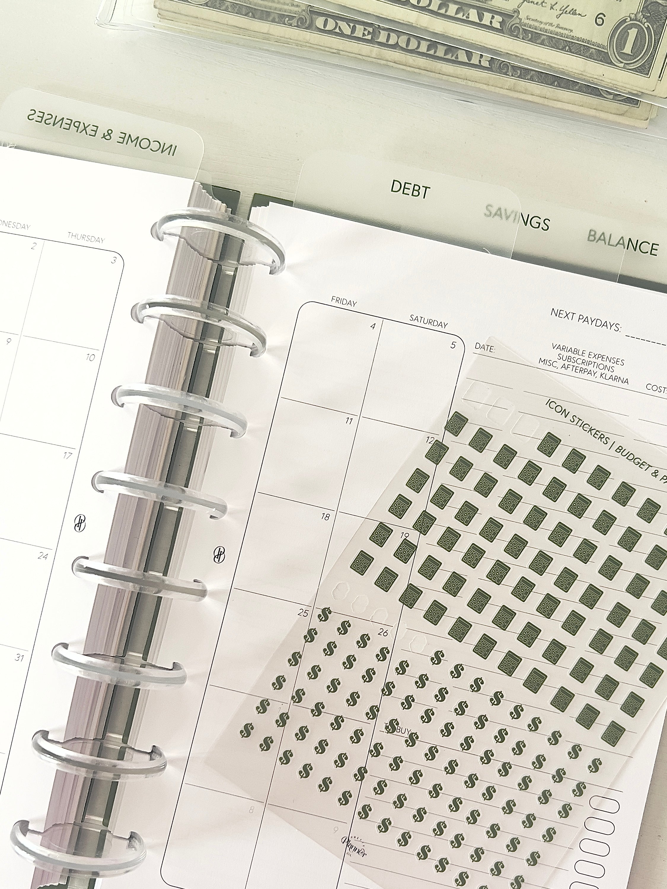 - At the beginning of each month of the 2026 Dated Monthly pages, is a Credit Score Tracker and a space for budget and savings goals. Inside the monthly of CFO, introduces a refined dated monthly format with elevated features, including variable expense tracking for subscriptions, Afterpay and Klarna payments, dedicated “To Buy” spaces, a “No Spend” check, and more.