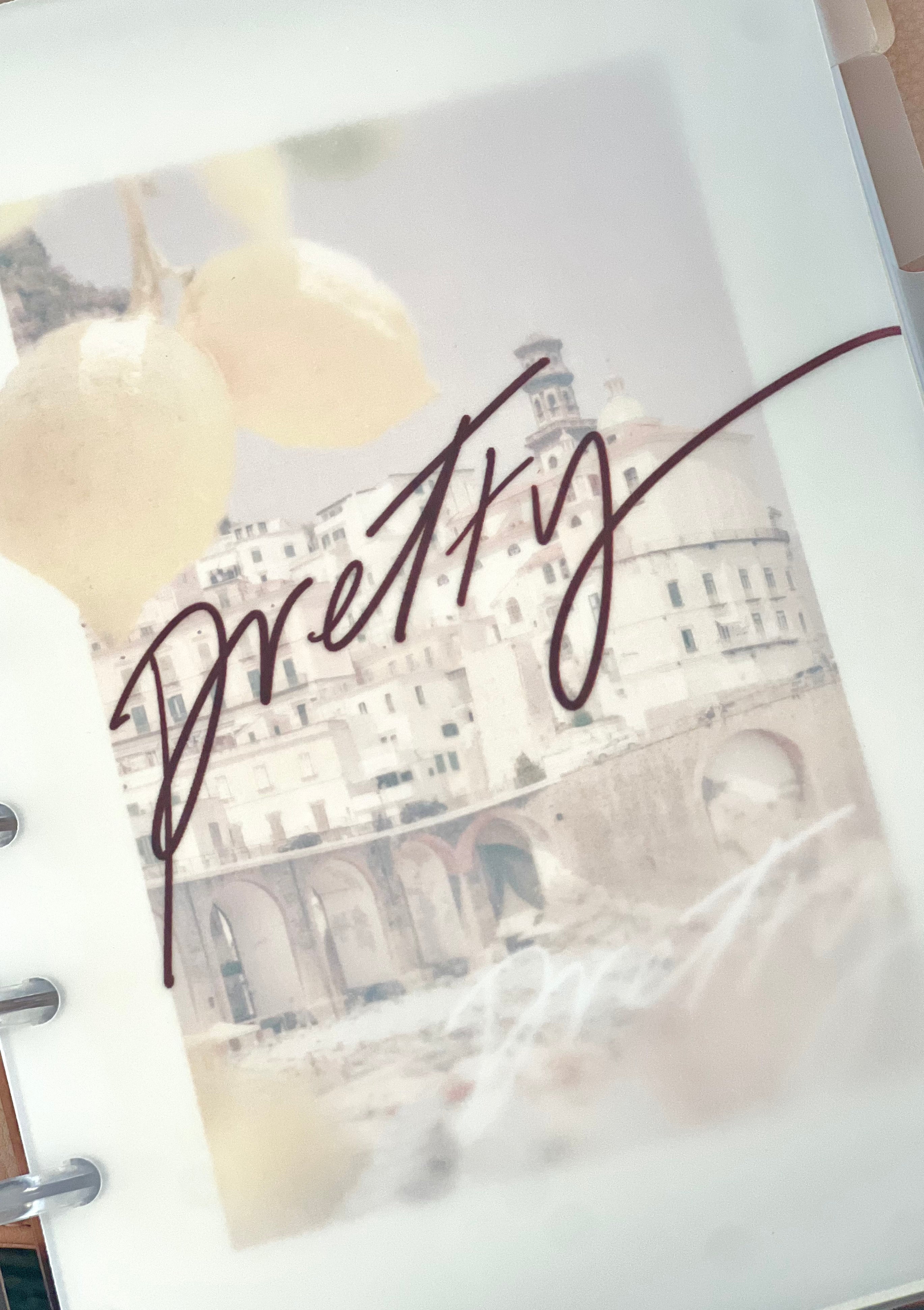 A glimpse of Italy with a touch of lemon. The visual deashboard captures warmth feeling of a coastal escape. Vintage postcard vibes with lemon motif. Front page inspiration or mid-planner mood. Serves as decor and a reminder to live pretty.